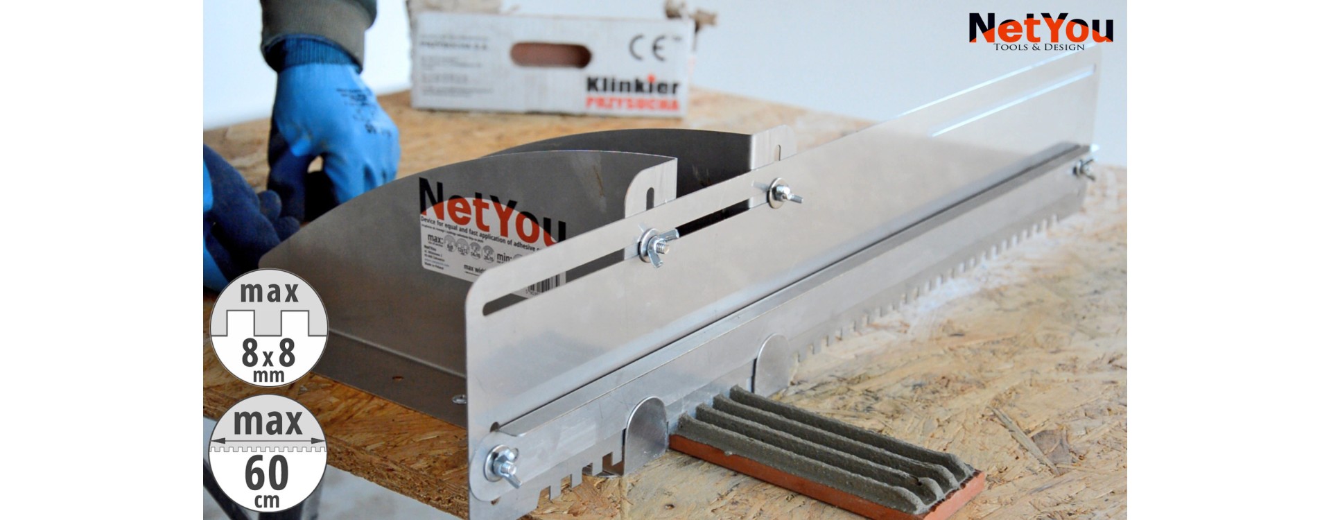 NetYou II عبارة عن أداة - مجرفة مسننة، سهلة التنظيف، ومصممة خصيصًا للنقل الآمن - جميع الحواف مستديرة، باستثناء الشقوق. يتميز هيكل الجهاز بالمتانة والقوة، مما يسمح باستخدامه ليس فقط لبلاط السيراميك ولكن أيضًا للحجر والأرضيات الخشبية والباركيه والستايروفوم والبوليسترين المبثوق (XPS) والعديد من المواد الأخرى. تسمح أجهزتنا بتطبيق المادة اللاصقة على البلاط بشكل أسرع بكثير من الطرق التقليدية. الآن، أصبح من الممكن تغطية 100 متر مربع في يوم واحد!