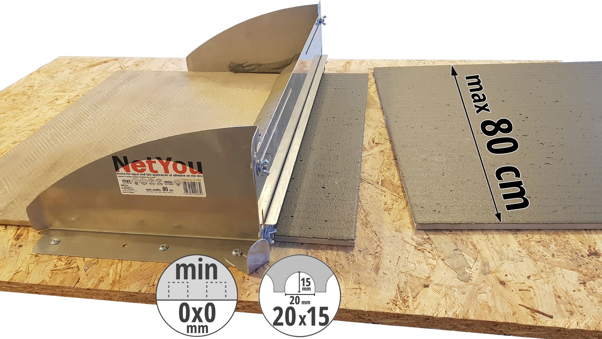 Ein Set zum schnellen und gleichmäßigen Auftragen von Kleber auf Keramikfliesen