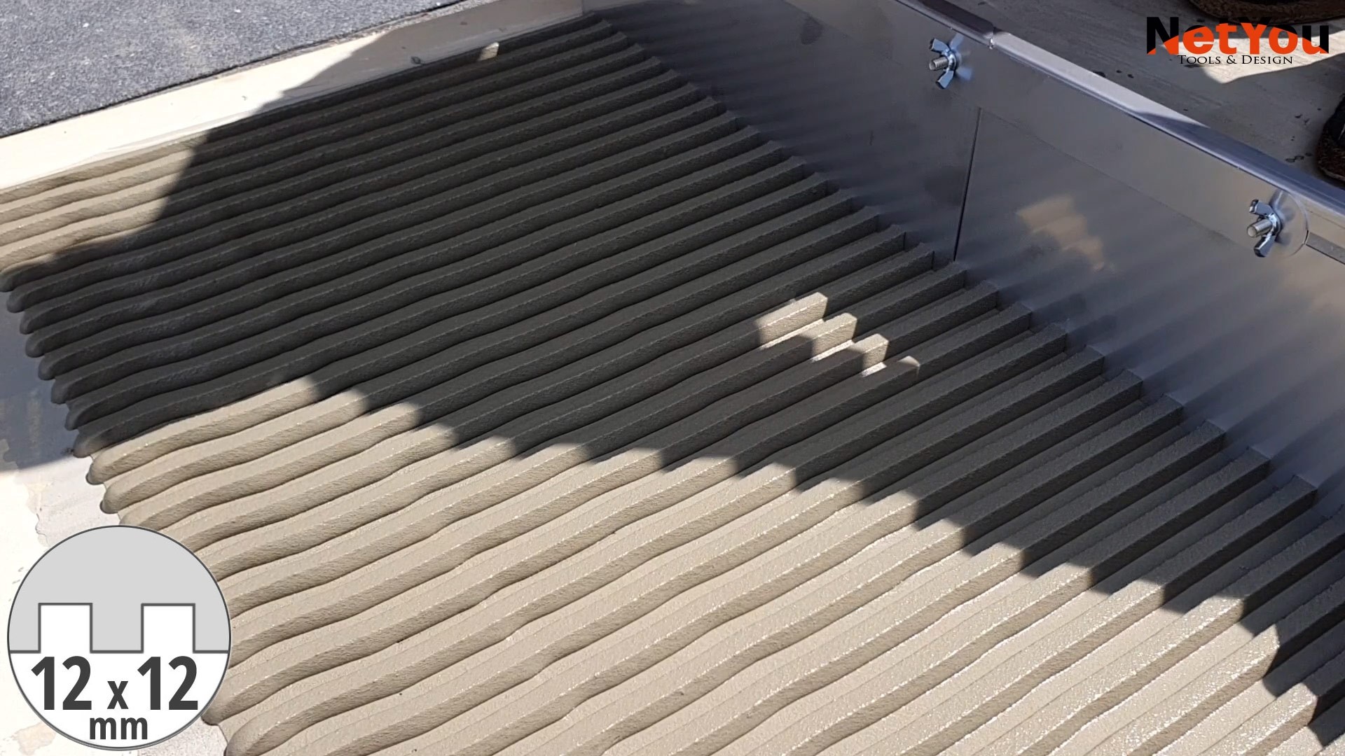 Dispositivo per l'applicazione rapida e uniforme della colla su piastrelle ceramiche
