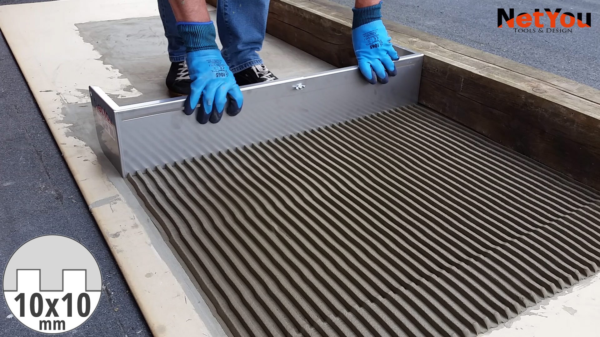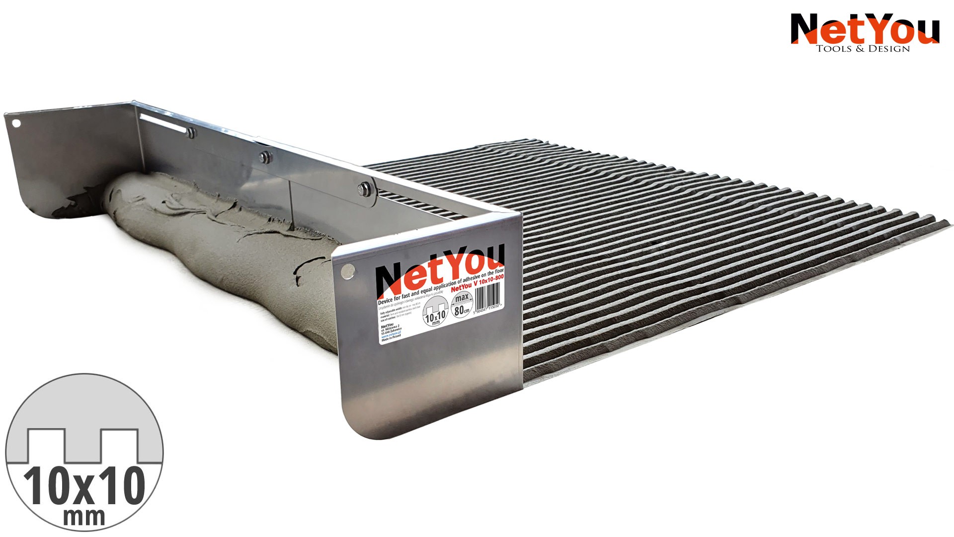 • NetYou V - регульований зубчастий шпатель для рівномірного та швидкого нанесення клею на підлогу, максимальна ширина 80 см
